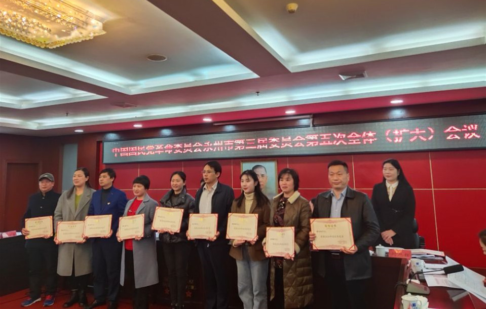 本网讯 3月21日上午,民革永州市第三届委员会第五次全体(扩大)会议在冷水滩召开,会议表彰了先进。民革安博站官网登录入口_安博(中国)支部荣获先进支部,这也是民革永州市委2013年开展争先创优以来民革校支部第五次荣获先进支部。陈义勇荣获优秀党员,方芳荣获优秀党务工作者,民革校支部提交的调研报告获2020年度永州市政协好调研二等奖。