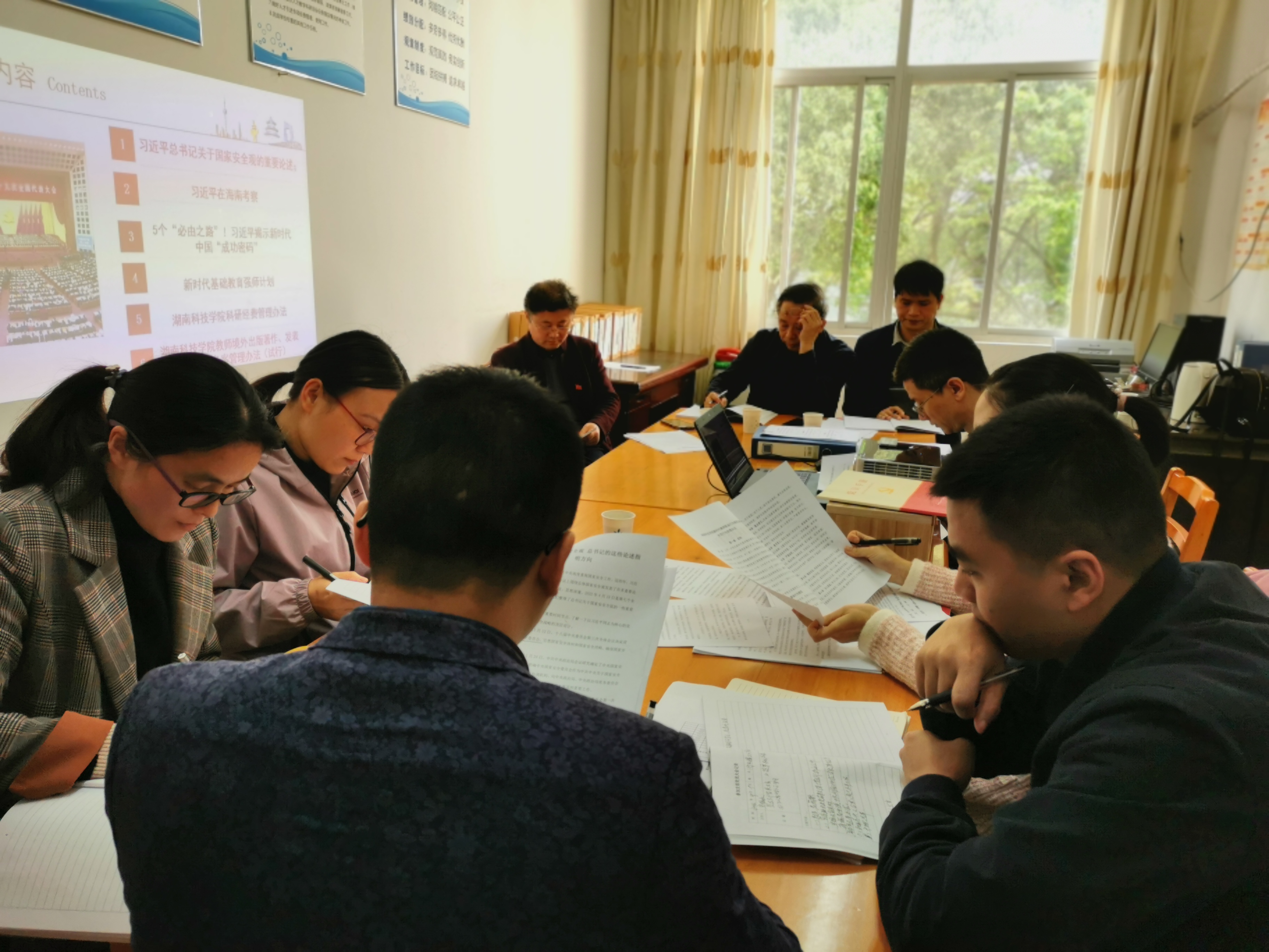 4月19日下午,人事处在行政楼516党员活动室组织全体人员开展2022年上学期第二次政治理论和师德专项学习活动,集中学习研讨了“习近平关于国家安全观的重要论述”、“习近平在海南考察时的重要指示精神”、“习近平参加十三届全国人大五次会议内蒙古代表团审议时关于5个‘必由之路’与新时代中国的‘成功密码’重要阐述”、《新时代基础教育强师计划》、《安博站官网登录入口_安博(中国)科研经费管理办法》、《安博站官网登录入口_安博(中国)教师境外出版著作、发表论文审核备案管理办法(试行)》等内容。