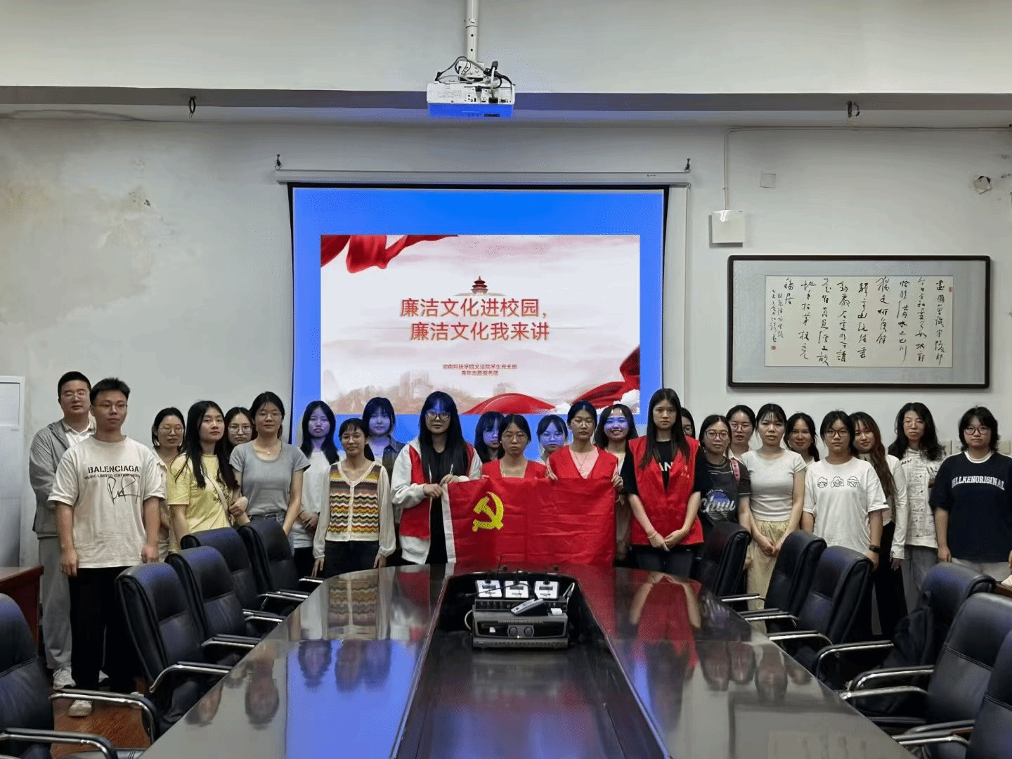 2024年5月17日星期五,安博站官网登录入口_安博(中国)文法学院青年志愿服务团和社会实践部在明德楼603教室开展以“树清廉家风,扬浩然国风”为主题的读书分享会。