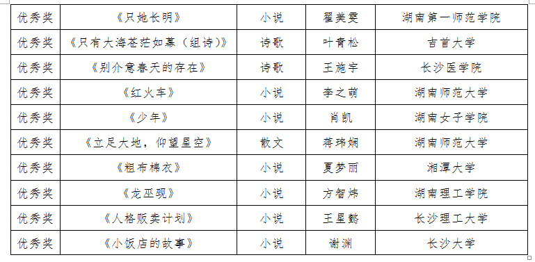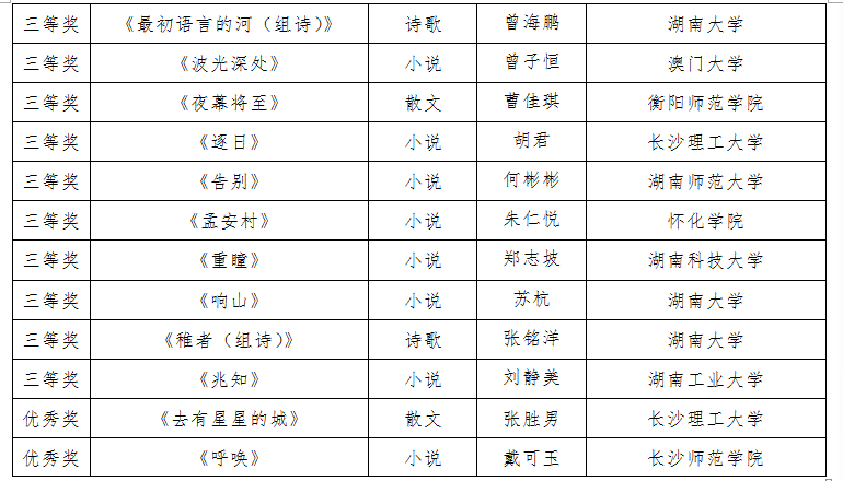 附:第二届湖南高校大学生征文评审结果