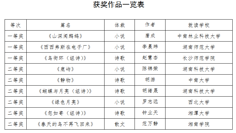 第二届湖南高校大学生征文评审结果公示