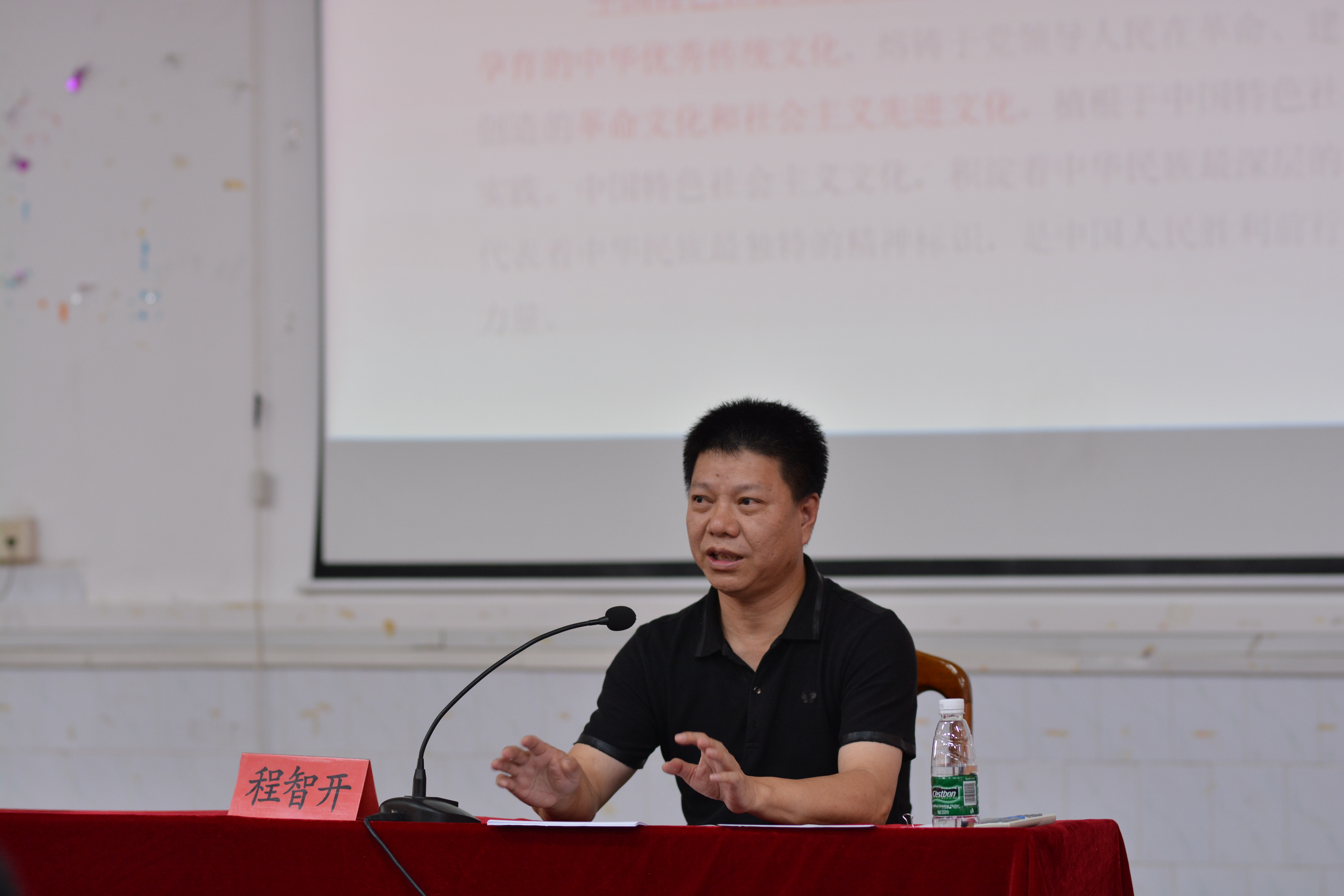“程校长的讲课理论性强,内容丰富,条理清晰,有助于我们正确理解中国特色社会主义四个自信,也更加坚定了对中国特色社会主义事业的信心”,教工第一党支部书记廖海燕同志说。