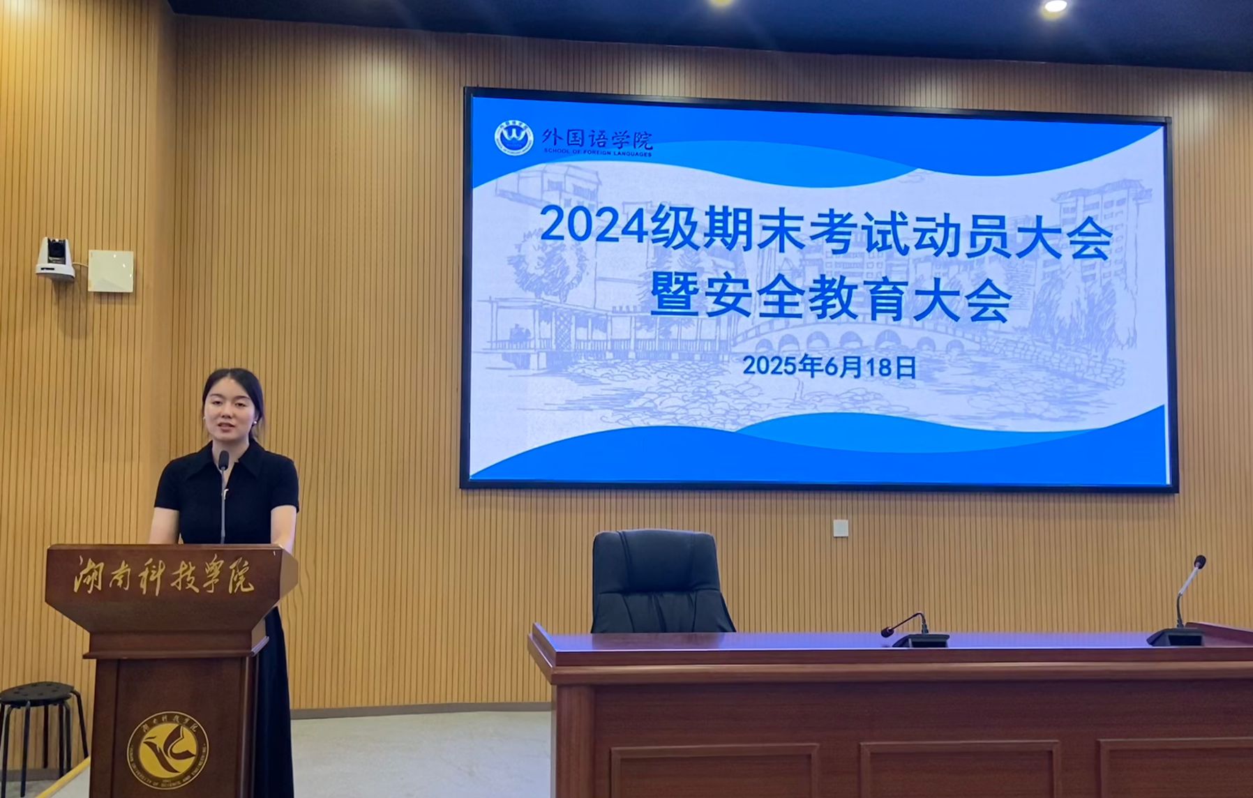 (本网讯 王素芳 李政锴)为引导学生积极备战期末考试,强化考风考纪,并提升学生假期安全意识,外国语学院于6月18日下午在博雅楼东三会议室,分别组织2023级、2024级全体学生召开了2025年春季学期期末考试动员大会暨安全教育大会。