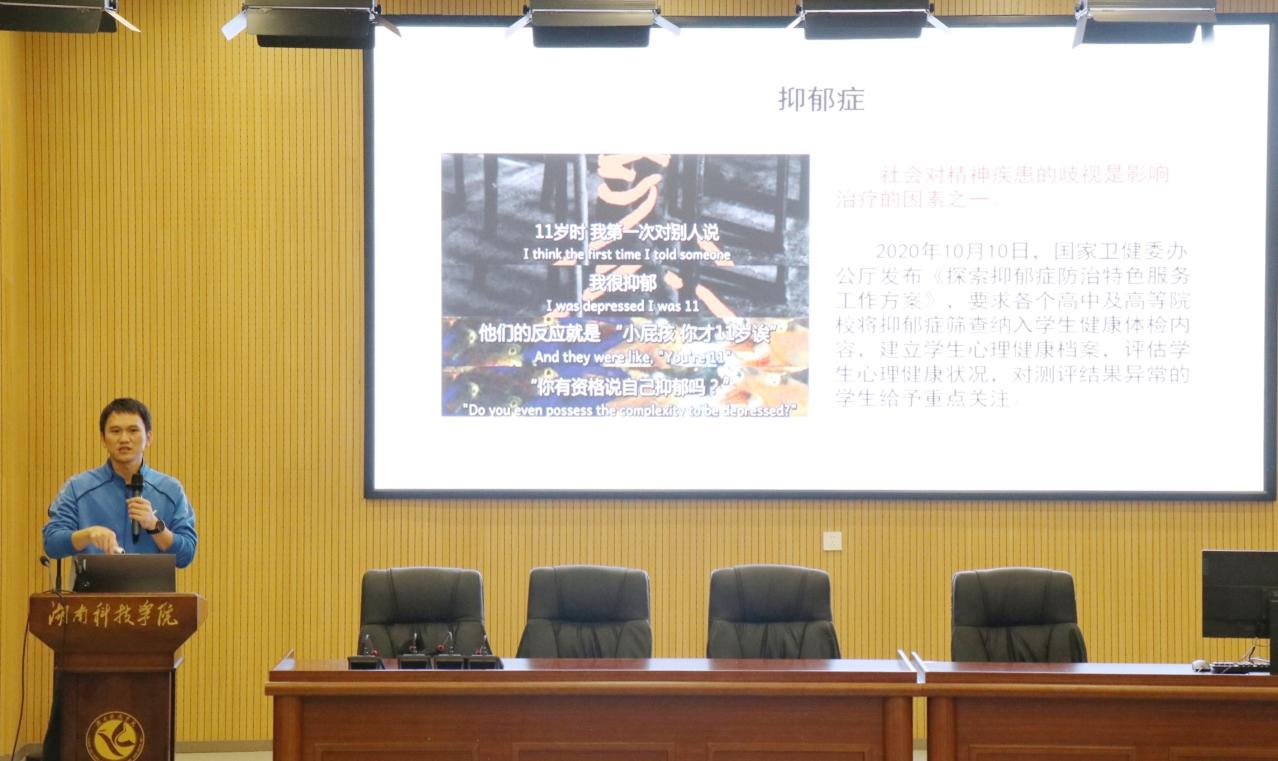 首先,陈小峰从心理危机的含义、类型以及如何识别心理危机进行讲解,并通过列举真实发生的案例,使同学们认识到心理健康教育工作的重要性。其次,他详细地讲解了大学生心理危机的上报与干预的知识。最后,陈小峰从识别、上报、帮扶三个方面进行介绍,让同学们更好地了解到当面临心理问题时该如何处理。