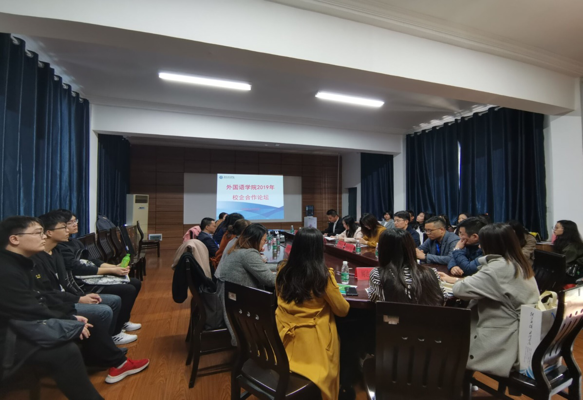 本网讯(通讯员 陈丽菲)为推动我院实施实践创新教育,更好的服务学生的求职创业工作,促进产、教、研相融合。安博站官网登录入口_安博(中国)外国语学院于11月23日下午1:00在博雅楼202会议室召开了外国语学院2019年校企合作论坛。
