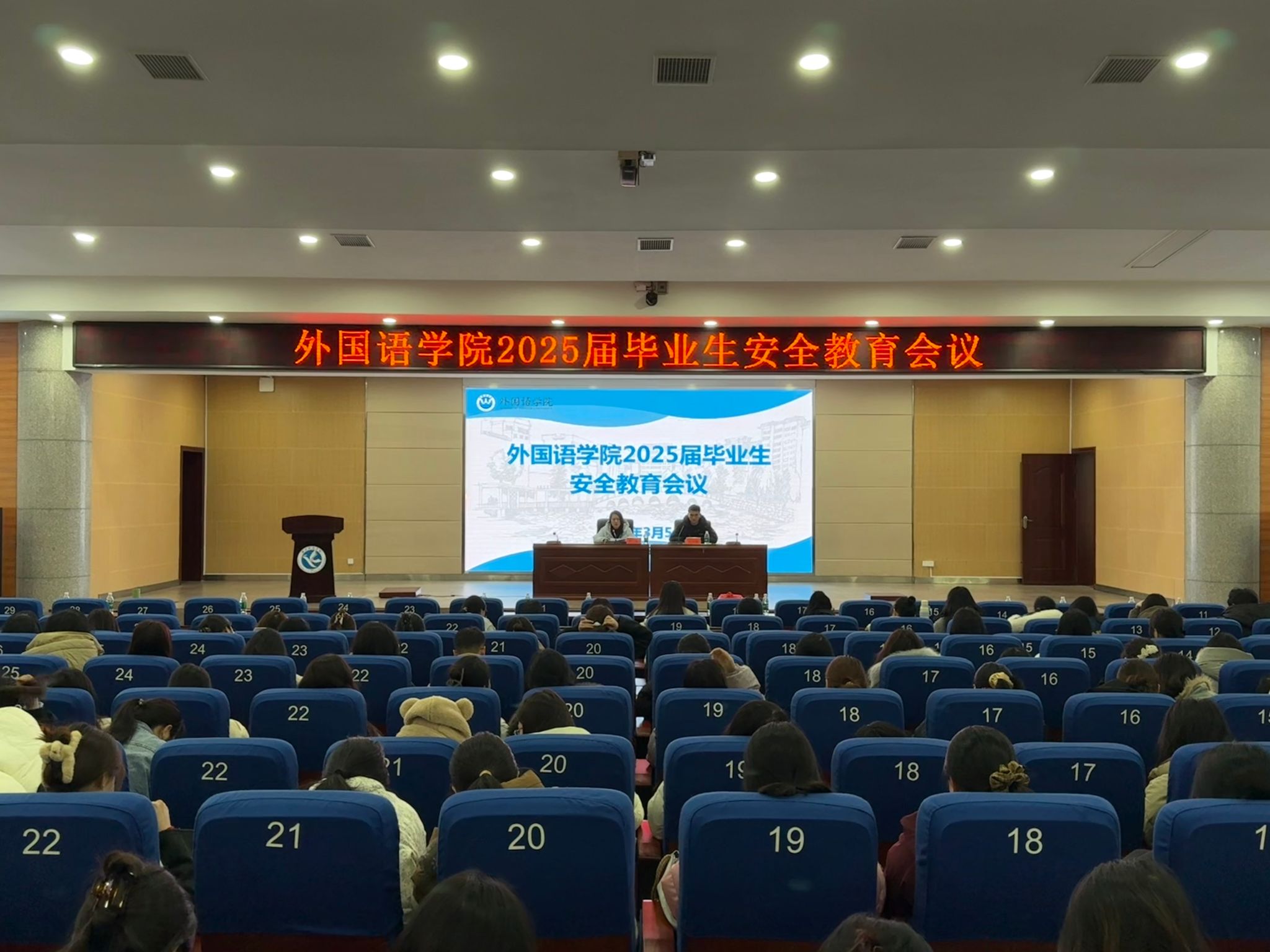 (本网讯 陈小峰 李政锴)3 月 5 日,外国语学院为切实做好毕业生教育管理,筑牢校园安全防线,推动高质量就业,召开 2025 届毕业生安全教育暨就业工作推进专题会。学院党总支副书记罗晶、学工办主任陈小峰及 2025 届在校毕业生参会。