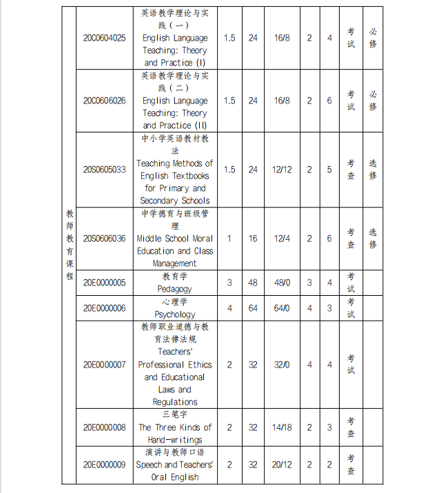 掌握英语学科发展和中学英语课程改革发展动态,能在自身专业发展 和中学英语教育教学实践中不断反思,改进教学,养成终身学习的习惯。 具有良好的团队合作精神和沟通协调能力,具备成长为中学英语教育卓越 教师的素养。