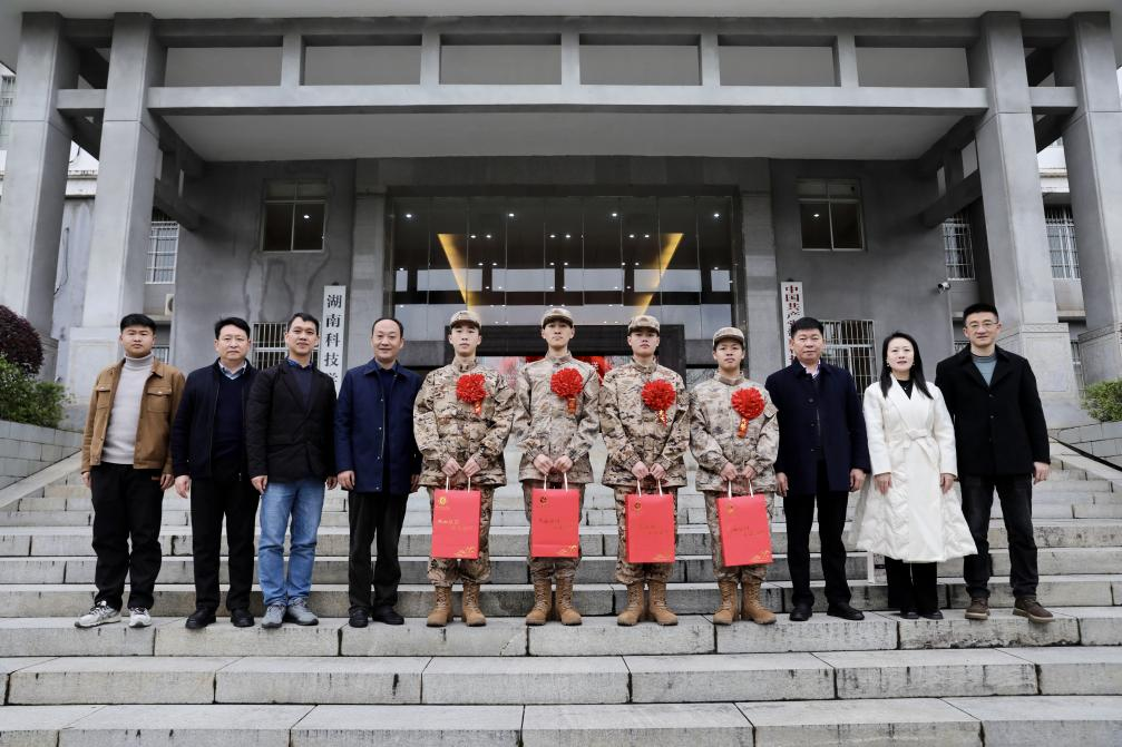 杨涛代表学校向积极应征入伍的4名新兵表示热烈祝贺,并为即将入伍的同学送上殷切的寄语。杨涛对入伍新兵提出三点期望:一是要筑牢理想信念,提高政治素质,严守纪律,听从指挥,坚定不移听党话、跟党走;二是要尽快转变角色,积极适应部队生活,坚决服从管理,熟练掌握军事技能、安心服役;三是要报效伟大祖国,把满腔热情化为报国之志,以实际行动建功军营,用优异的表现为父母增光、为学校添彩!