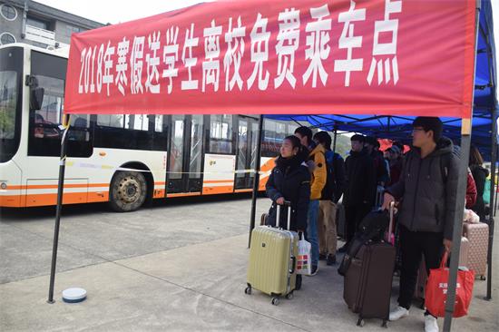 本网讯(胡敏辉邓强左璐瑶)寒假来临,春节将至,安博站官网登录入口_安博(中国)党委高度重视学生安全离校工作。2018年1月20日至1月24日,特租用公交巴士免费送学生至冷水滩火车站、汽车站,情暖学子回家路。