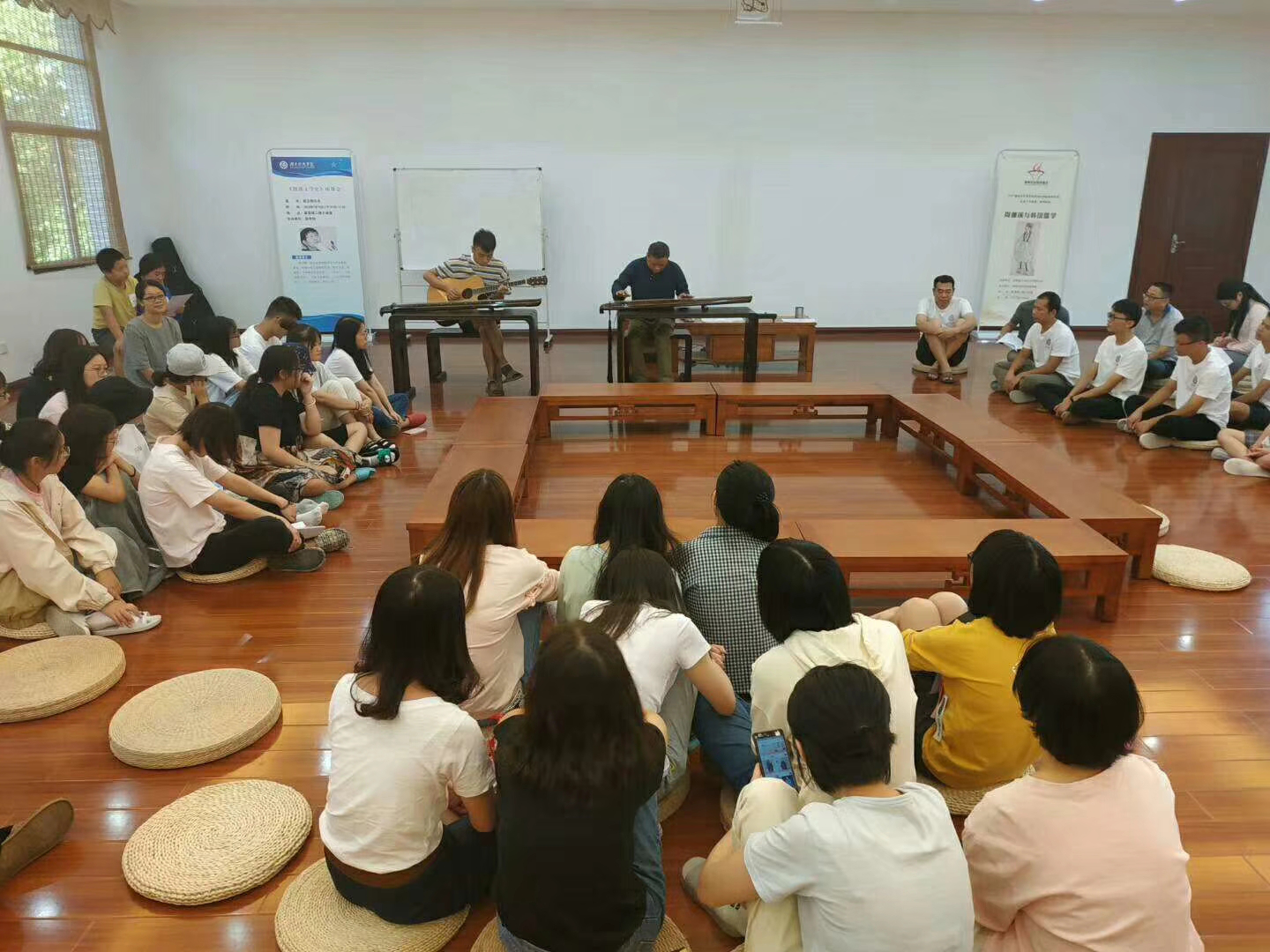 此次见面会围绕“新生顺利进入大学,老生又长大一岁”的主题展开。下午三点半,全体师生准时赴约小成堂。见面会伊始,师生依次作自我介绍,随后,便开始了各种活跃氛围的才艺表演,新生代表带来了吉他演奏,老生代表展露了动听的歌曲与美妙的舞蹈,国学院古琴老师欧阳平彪和他的学生则带来古琴与箫的表演,国学院院长张京华教授与副院长周建刚教授为迎接新生、祝福老生而高歌一曲。最后,此次见面会在同学们一同切成长蛋糕、品尝蛋糕的欢声笑语中结束。