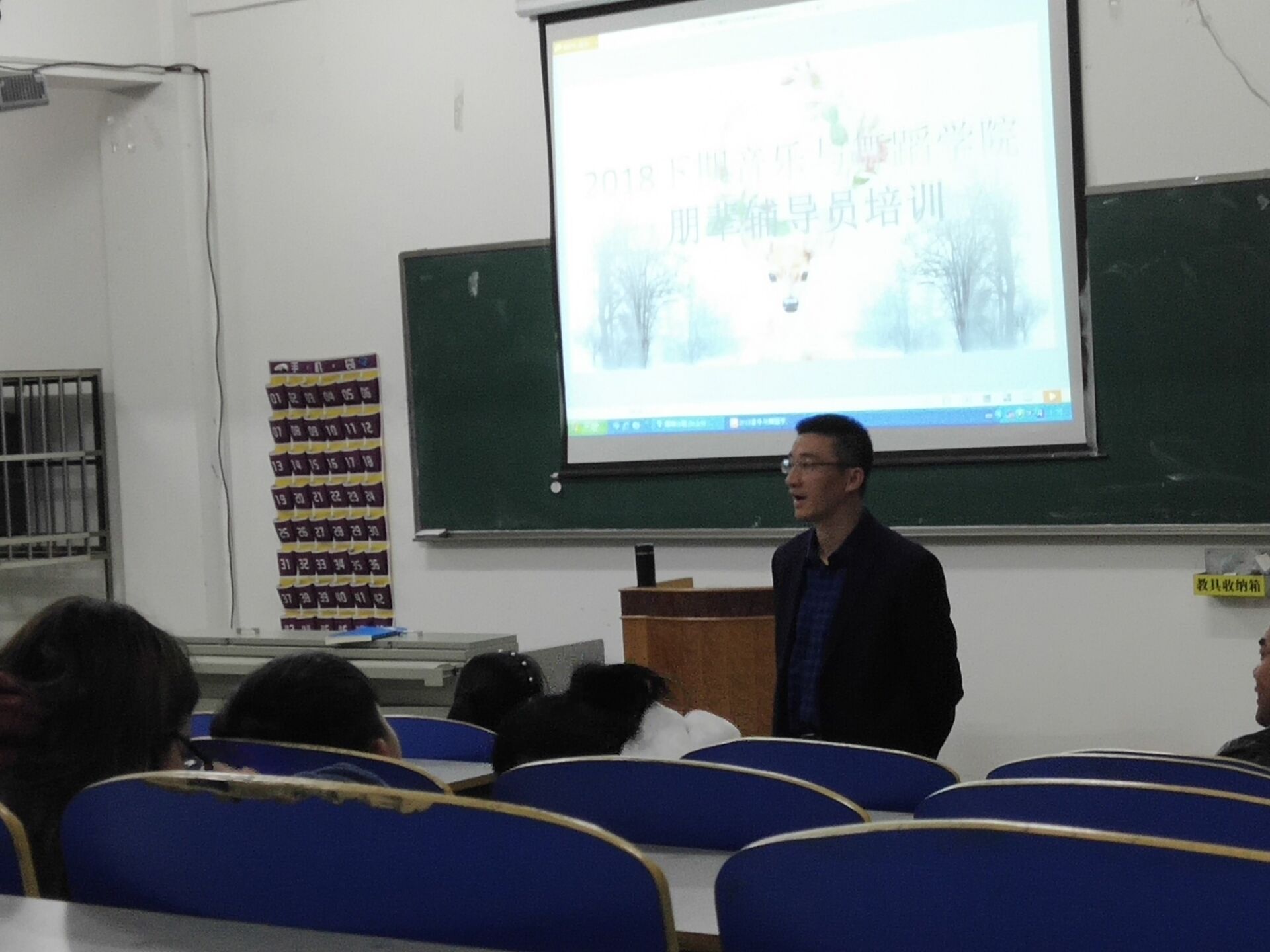 培训会上,首先,蒋书记对此次培训提出了要求,他强调:新生的思想和意识正处于形成期,要抓住这一时机,对同学们加以正确的引导,抓好入学教育工作,这对同学们的身心健康成长和学院的管理工作极为重要。“送人玫瑰,手有余香”,朋辈辅导员要从关心和服务同学的角度,深入细致的开展工作,见微知著,及时发现周围同学的异常言行和情绪变化,及时排解和引导,碰到不能化解的问题要及时的上报学院老师领导,便于及时的干预处理。随后,刘华剑老师就心理朋辈辅导员的职责与技术进行了专业讲解,特别强调了心理朋辈辅导员在开学期间心理辅导大优势,以及应注意的相关事项,并通过列举实际案例,对常见心理问题的识别技巧进行了详细的阐述。