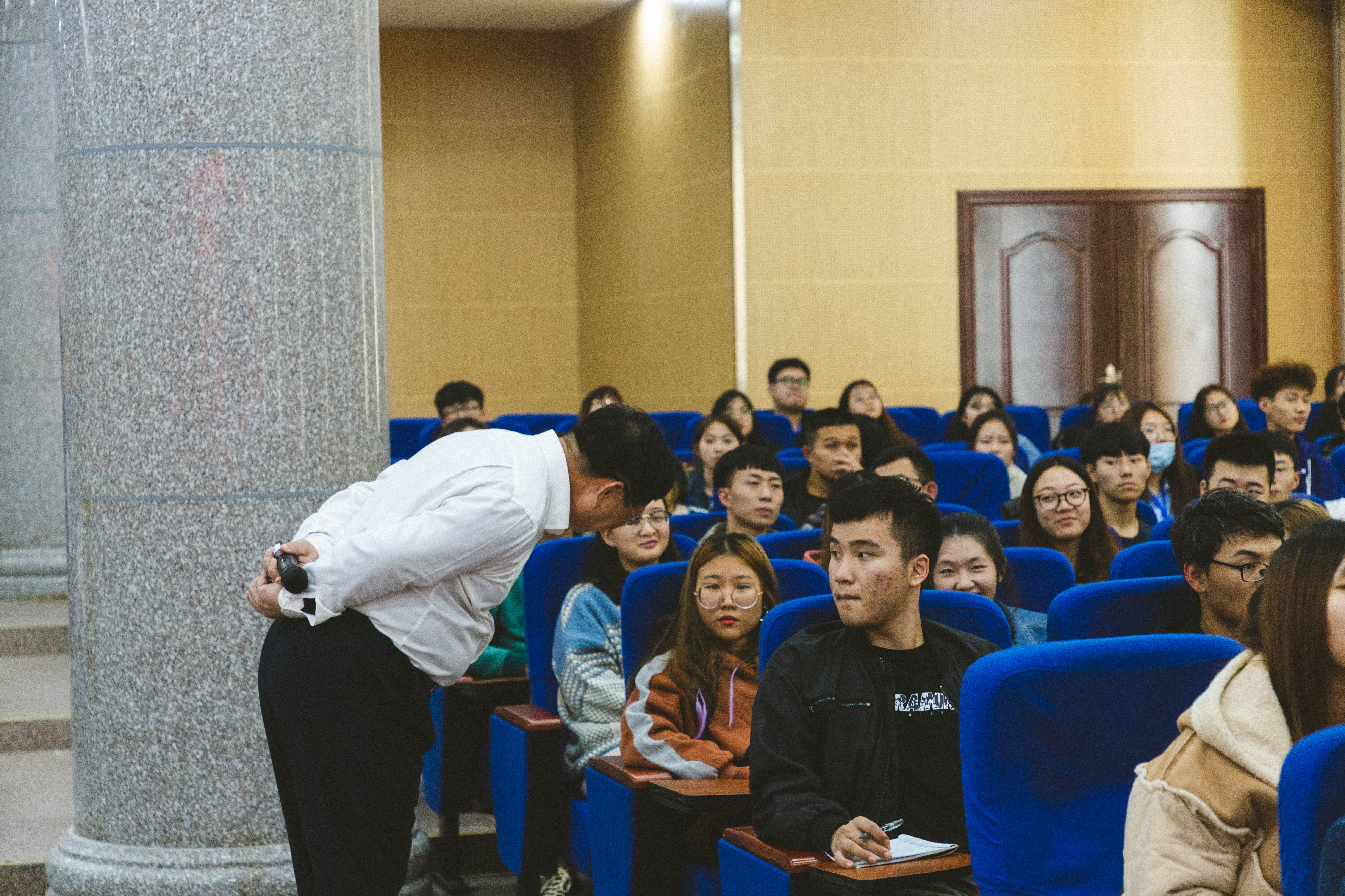 本网讯(通讯员杨涵)10月16日晚,我校第三期大学生骨干培训在潇湘大讲堂举行,校学工部、武装部部长唐华山担任主讲嘉宾,700余名学生骨干参加培训。