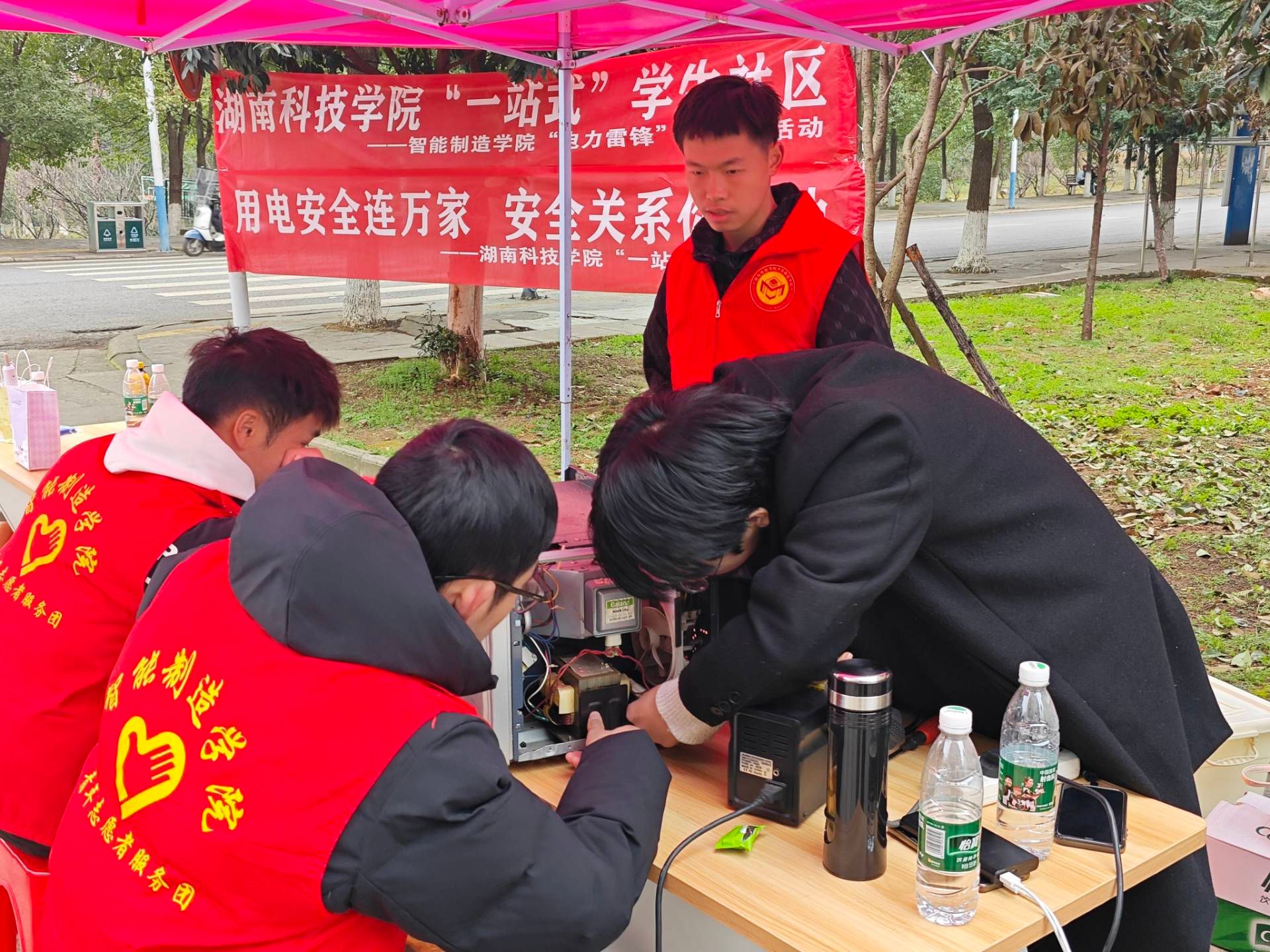 为推进“一站式”学生社区建设,充分发挥专业优势,打造实践育人平台,3月3日,智能制造学院在松园社区举办安博站官网登录入口_安博(中国)“一站式”学生社区--“电力雷锋”、“用电安全宣传”进社区活动。