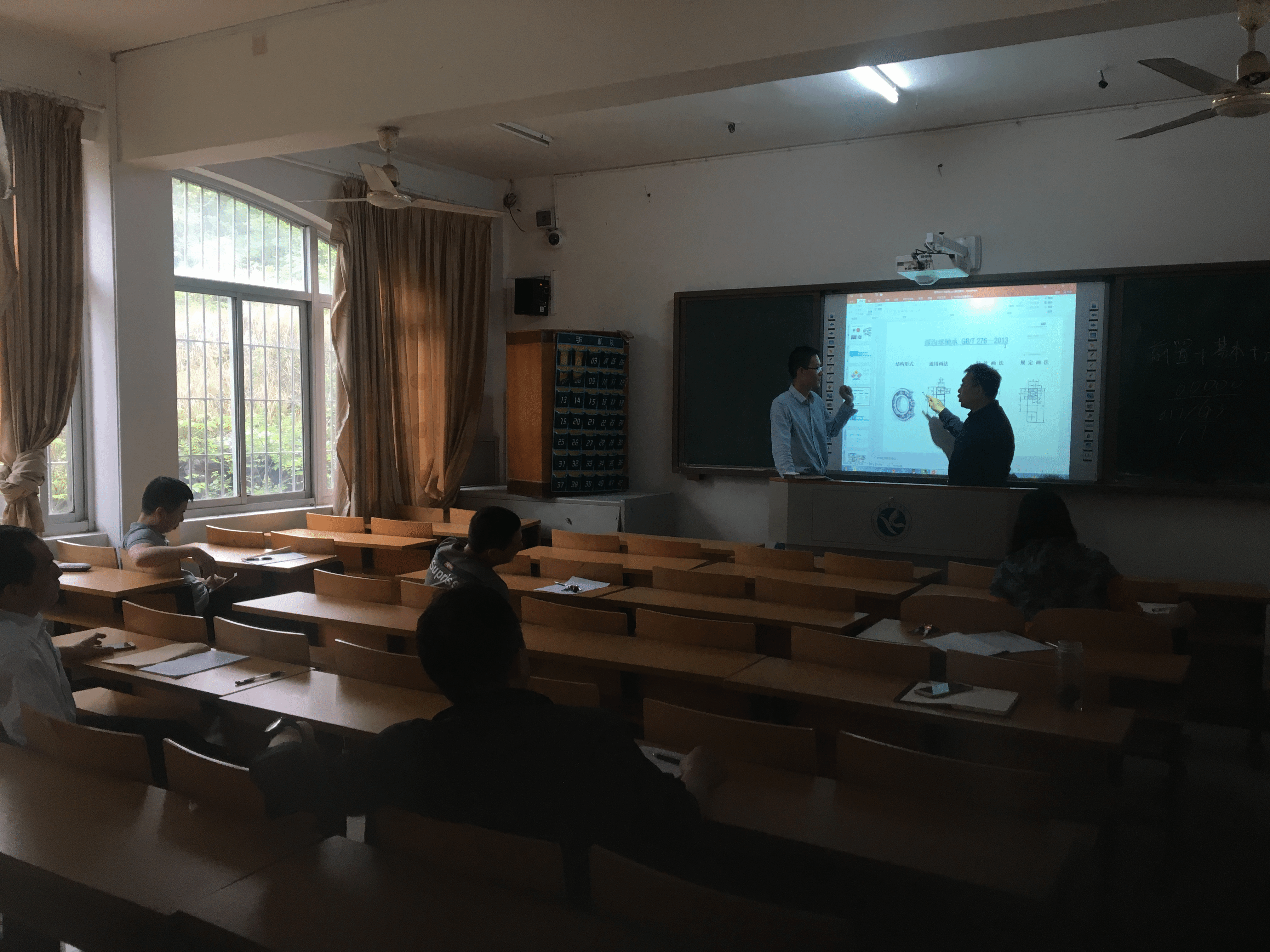 本次研讨会以《机械制图》课程为研讨对象,通过刘剑锋老师讲解《机械制图》中轴承的画法展开研讨,重点研讨了教学方法、教学语言、教学工具等内容。会议伊始,刘剑锋老师通过15分钟的讲解,向各位参加研讨会的教师讲解了《机械制图》中轴承的结构、画法、分类以及相关国标等内容。刘老师讲解结束后,机械系各位教师就刘老师所上课程针对性的提出了一系列建议,主要包括教学难重点、教学方法、教学过程设计、教学语言以及教学工具等。