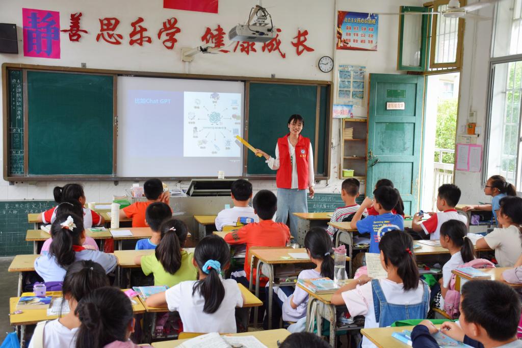 课堂上,志愿者们化身为“小老师”,为同学们讲解什么是人工智能,让同学们对人工智能有了初步的了解和认识;从医疗、教育、农业等方面介绍了人工智能的价值意义和发展趋势,激发学生们对前沿科技的兴趣。