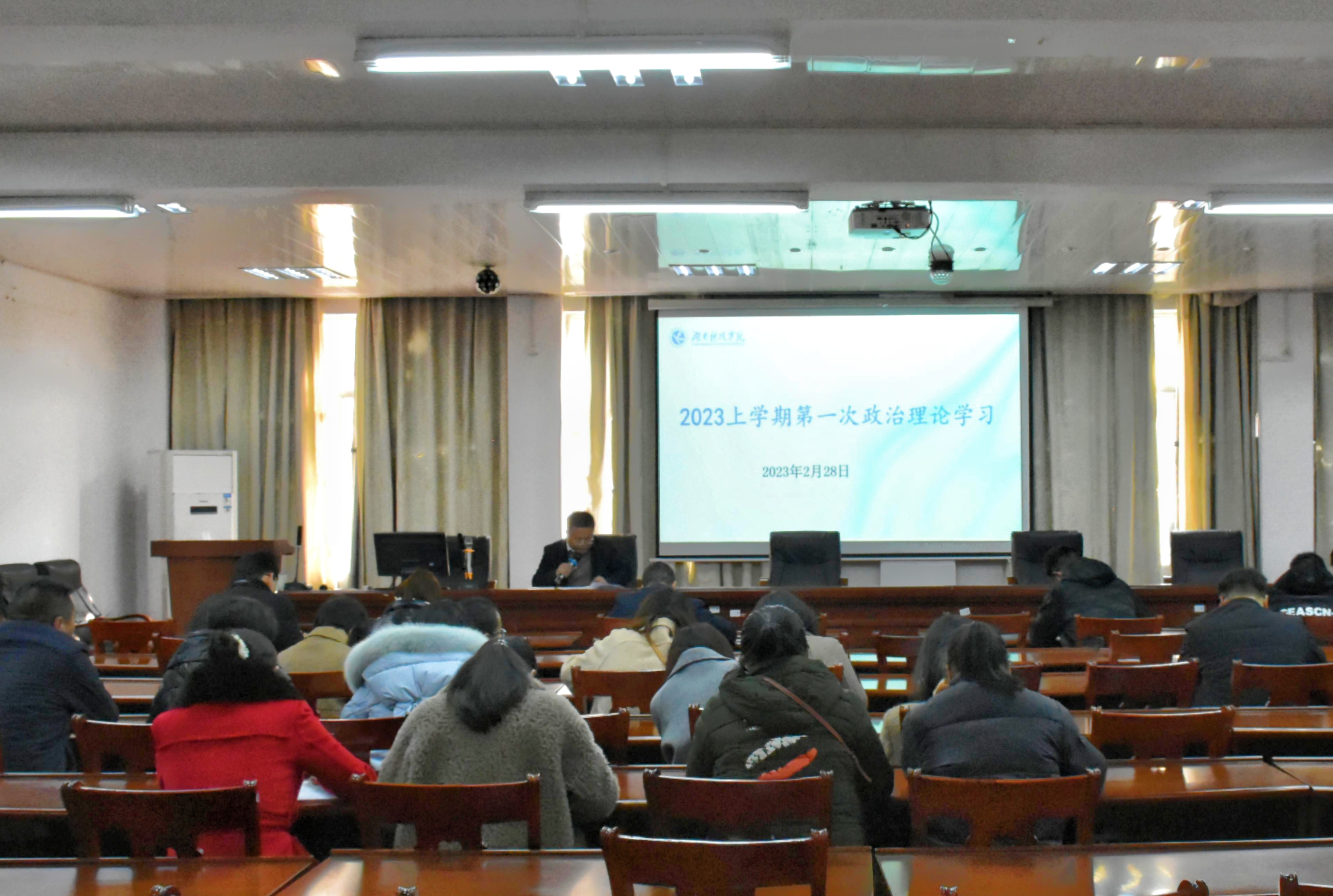 本网讯(通讯员 梁智 刘兵兵)2月28日,我院开展2023年上学期第一次政治理论学习,院领导及全体教职工参与,会议由院党总支副书记夏汉伟主持。