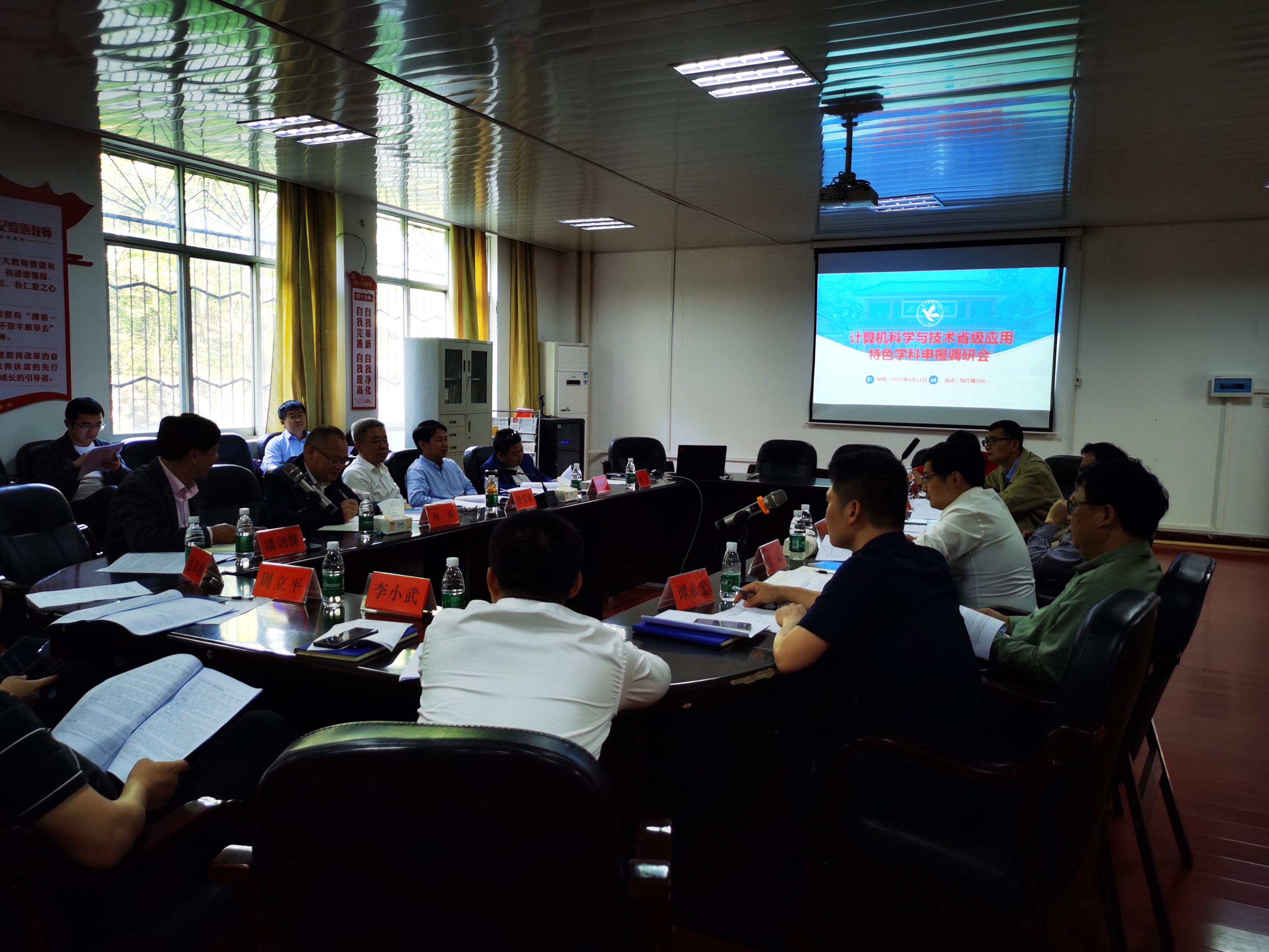 本网讯(通讯员 向慧蓉)4月11日,学院召开计算机科学与技术申报“十四五”省级应用特色学科专家咨询会。专家组指导组组长、党委书记曾宝成,专家组指导组第一副组长、副校长李常健,专家组指导组第二副组长、副校长何海,专家组成员潘剑锋、黄文、魏大宽、谭永宏、唐耀平,我院全体班子成员以及本学科的骨干成员40余人参会。会议由我院院长尹向东主持。