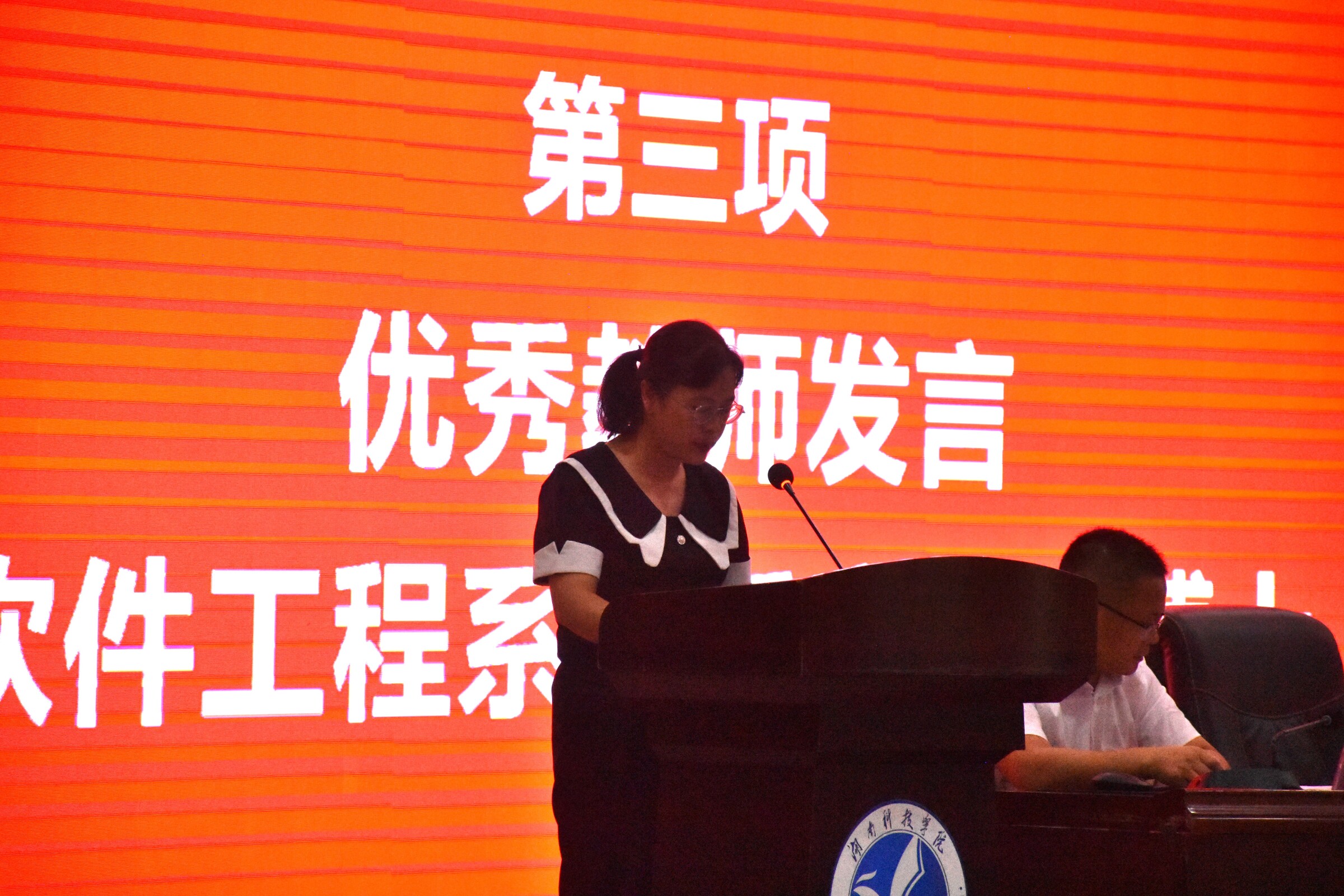 随后,软件工程系主任唐雅媛博士作为优秀教师代表发言,她寄语新生要保持乐观,勇于挑战,紧跟时代、实干巧干,用勤奋、汗水、智慧和激情向未来进发,沿着梦想继续前行。