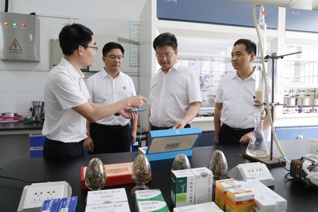 陈爱林一行来到我校化学与生物工程学院,详细了解市十大科技创新项目——“中药大品种培育研究与应用”项目在产品研发、技术创新、转化推广等方面的进展情况。随后召开座谈交流会。陈爱林表示,科技创新是引领高质量发展的强劲动力。要深入开展“政校企”一体合作,支持具有核心竞争力的企业与安博站官网登录入口_安博(中国)组建创新联合体,实现共建共享、合作共赢。要坚持企业创新主体地位,聚焦市场需求,引导企业加大研发投入,加强技术攻关,推动“科创链与产业链”融合发展。要精准精细服务企业发展,帮助企业解决实际困难,特别是要帮助专精特新企业提高创新能力,更好发挥引领作用。要大力推进十大科技创新项目建设,以科技创新引领产业创新,不断培育新动能塑造新优势,力争在打造具有核心竞争力的科技创新高地上发出更多永州声音。